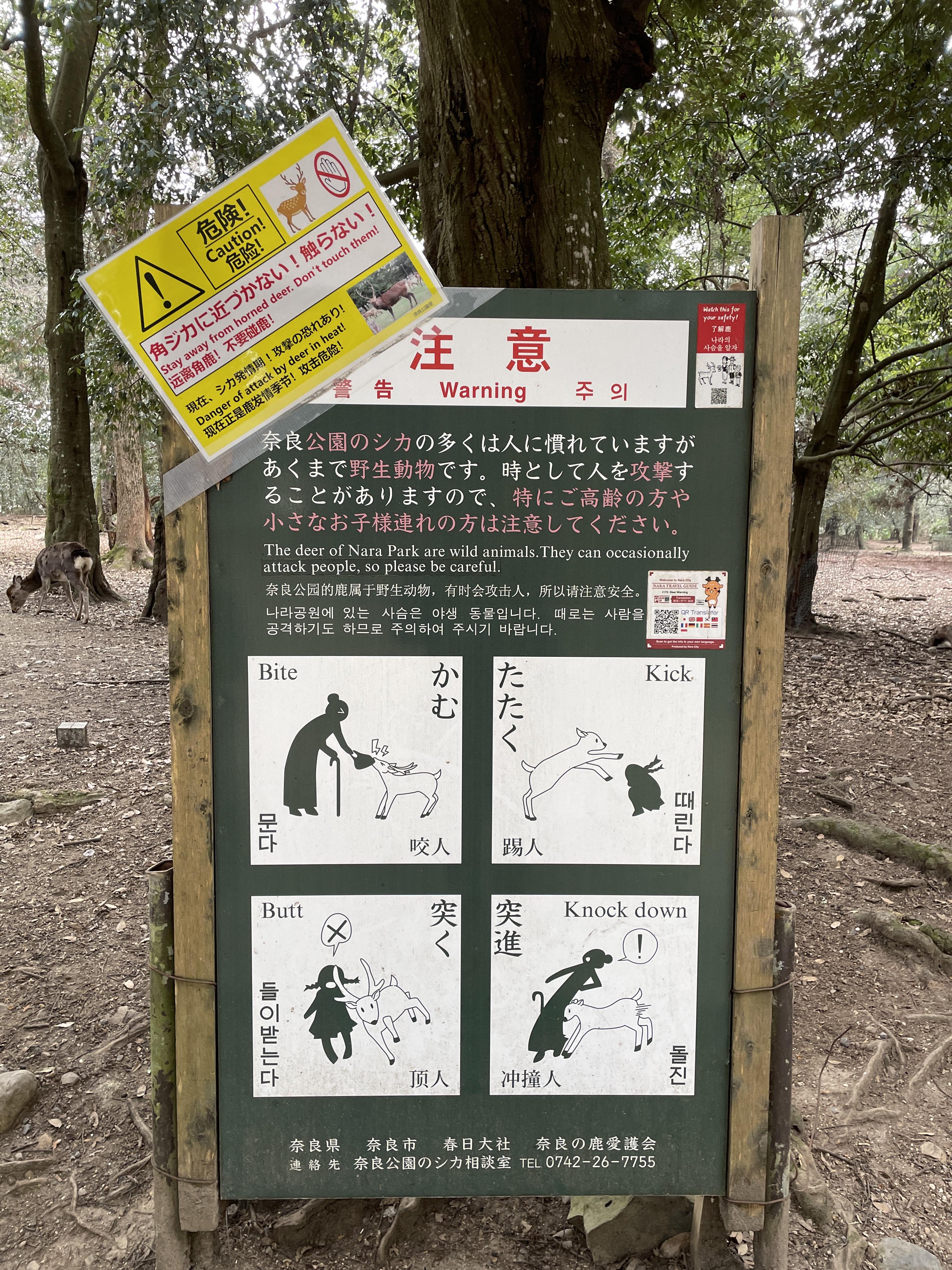 표지판 한 편에는 특히 뿔 크게 자란 수컷 사슴은 극도로 주의하라는 추가 주의문까지 붙어있다.