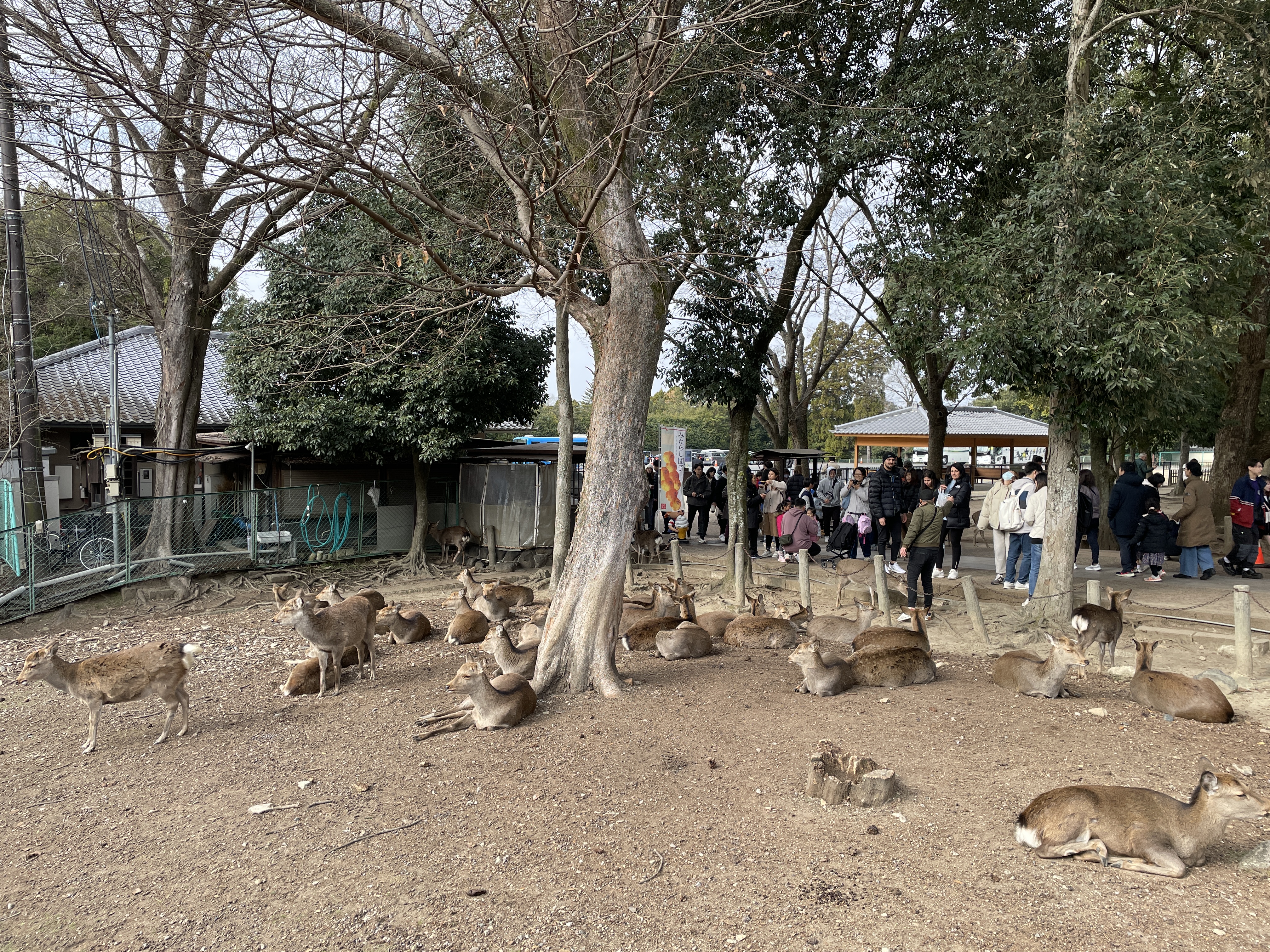 토다이지로 다가갈 수록 많아지는 인파들로 부터 이미 많은 전병을 먹은 듯한 사슴들은 사람들에게 관심을 끊고 여기저기 모여 졸고 있었다.