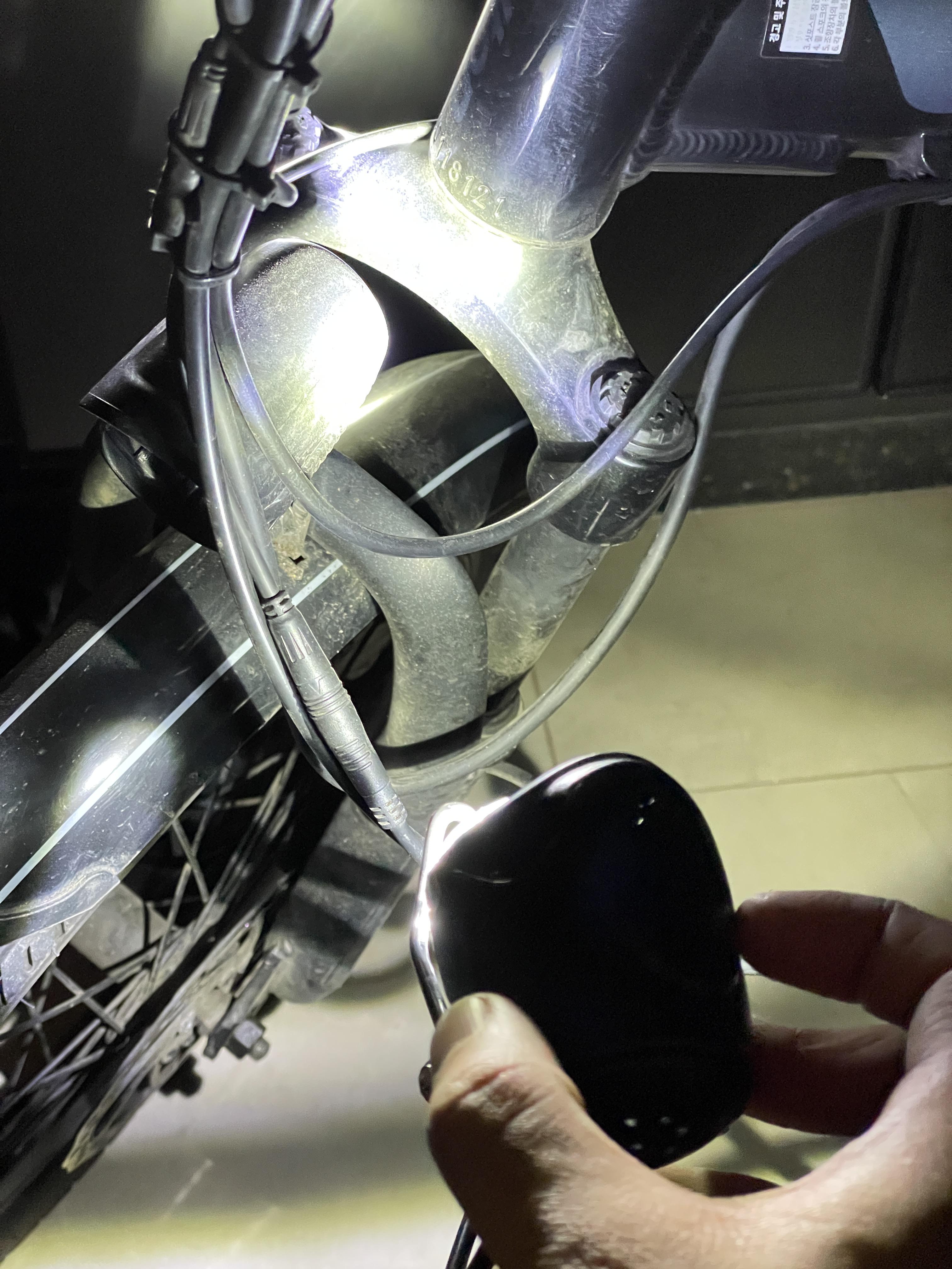일단 전기자전거의 라이트 버튼을 눌러 잘 켜지는지 확인. 다 조립해 놨는데 안 켜지면 짜증난다.