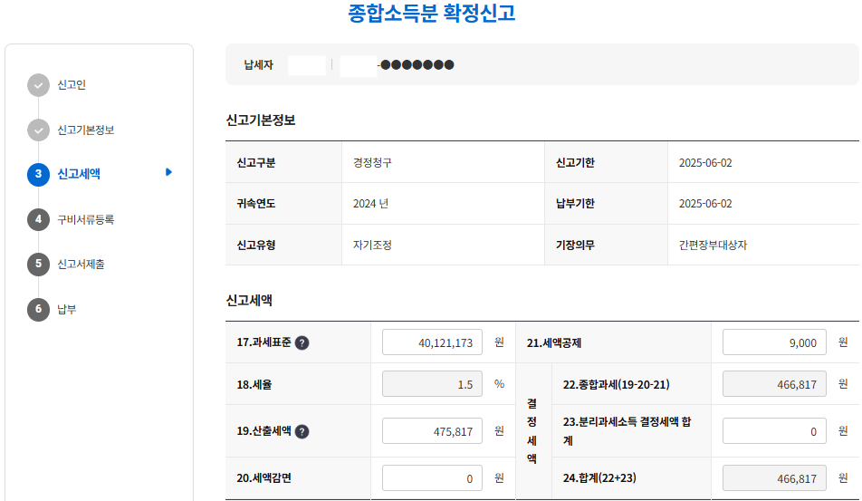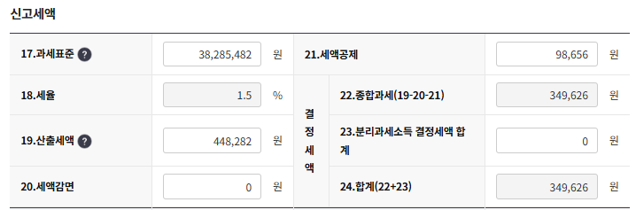 여태까지 신고한 내용들로 과세표준이 정해지고 산출세액이 나오는데 이를 기준으로 기장세액 공제액이 결정된다.