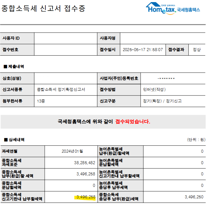 이는 곧 진행할 지방세 종합소득분 경정청구를 위함이다.