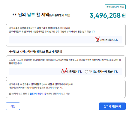 해당 없는 내용들은 마저 넘기고 나면 신고가 끝나고 제출만 하면 된다.