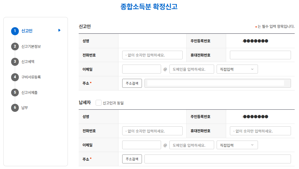 포스팅의 캡처에는 상당 부분의 내용이 미리 입력이 되어 있는데, 이는 필자가 이미 한번 신고를 한 후 수정신고를 위해 다시 들어온 상태이기 때문이다.