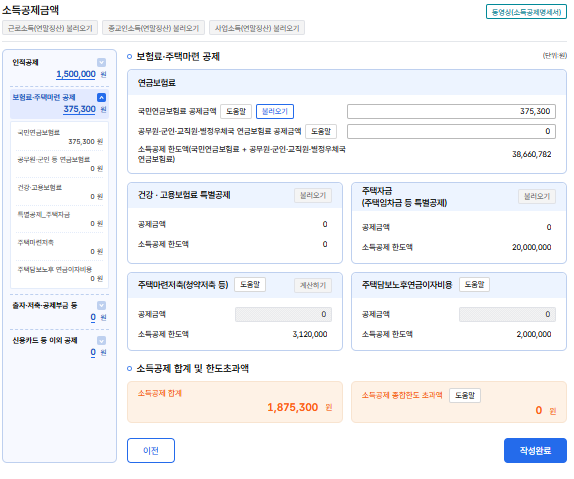 국민연금을 납부한 내역도 공제가 된다.