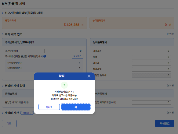 이는 여태까지 입력한 서식이 국세청에 제출하는 표준 신고 양식을 만드는 서식이었기 때문에, 신고서 제출과 동시에 필요한 서류가 생성되어 제출이 된 것이다. (이렇게 세금내기가 쉽다. )