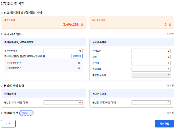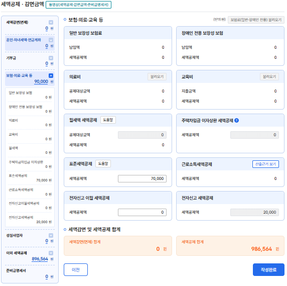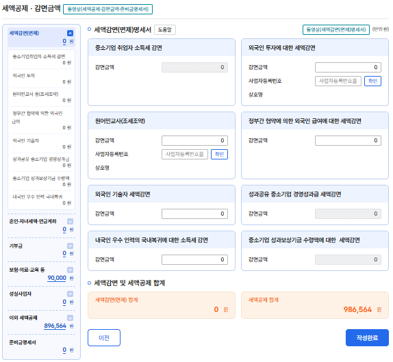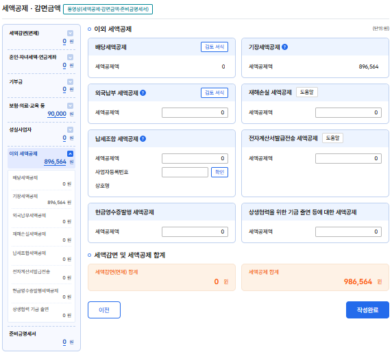 산출세액까지 입력하면 여태까지의 계산 결과를 통해 공제 세액이 정해진다.