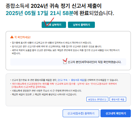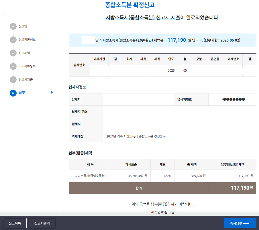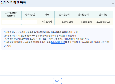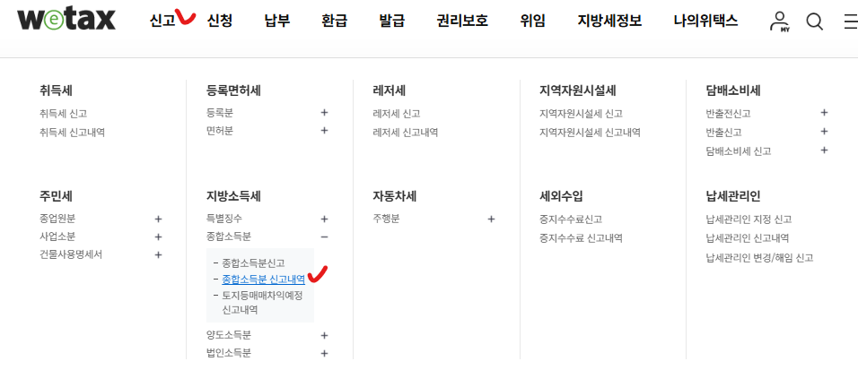 아까의 조회 내역에서 지방세 신고 이동 버튼을 누르면 바로 지방세 종합소득분 신고까지 할 수 있다.