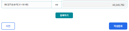 필자의 경우엔 조정은 해당이 없어 작성된 손익계산서 상의 당기 순이익을 그대로 입력했다.