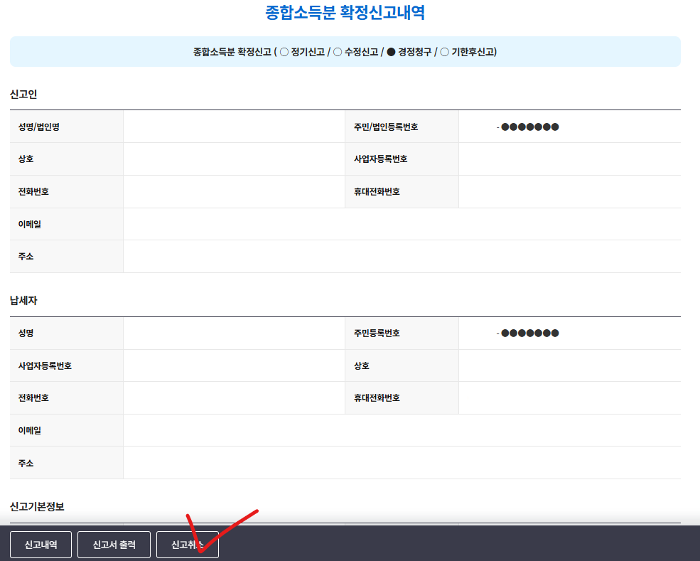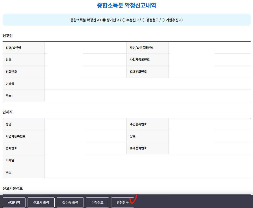 참고로 수정신고는 신고를 통해 세금을 더 내야하는 경우 진행하고, 환급 받아야 하는 경우는 경정청구를 진행하면 된다.
