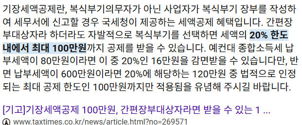 오늘 시간을 쓰는 가장 중요한 이유. 기장세액공제다.