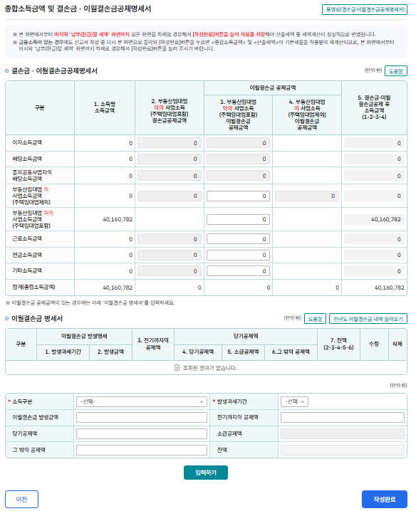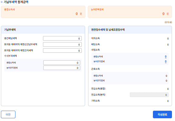 따로 근로소득이 있는 경우 원천징수세액 명세도 추가하면 되는데 복둥이는 해당이 없다.