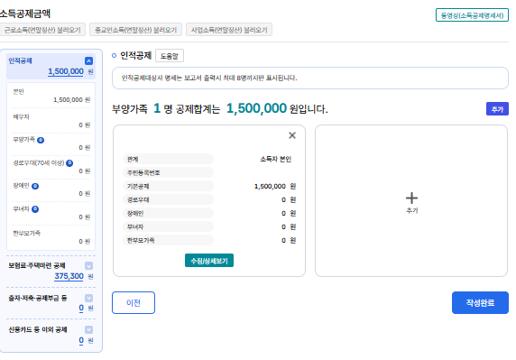 종소세도 근로자 연말공제처럼 소득공제가 있다. 해당되는 것들을 넣어준다.