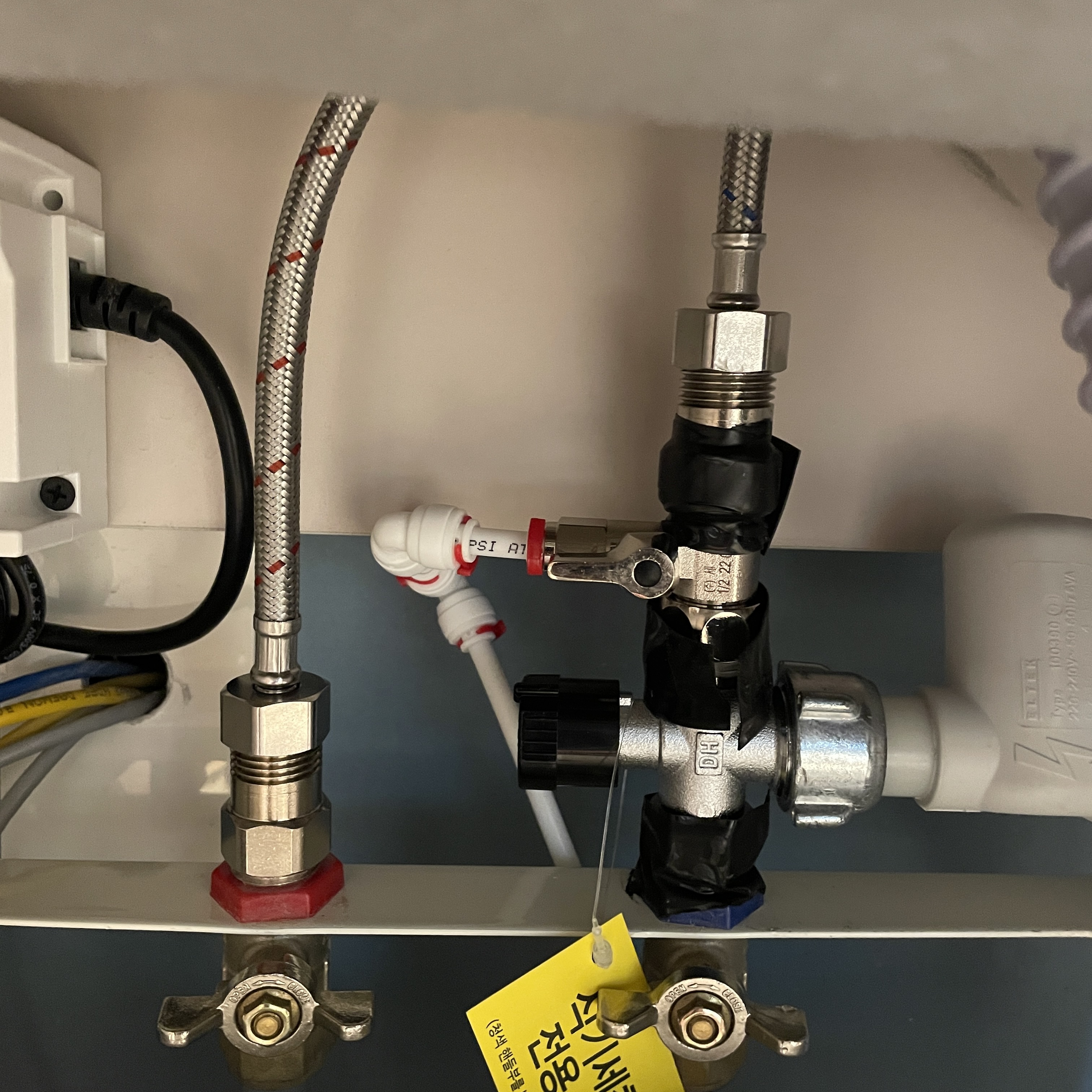 혹시 모르니 설치 후 1-2 시간쯤 뒤에 아까 연결한 물호스에 누수가 없는지 들여봐주자.
