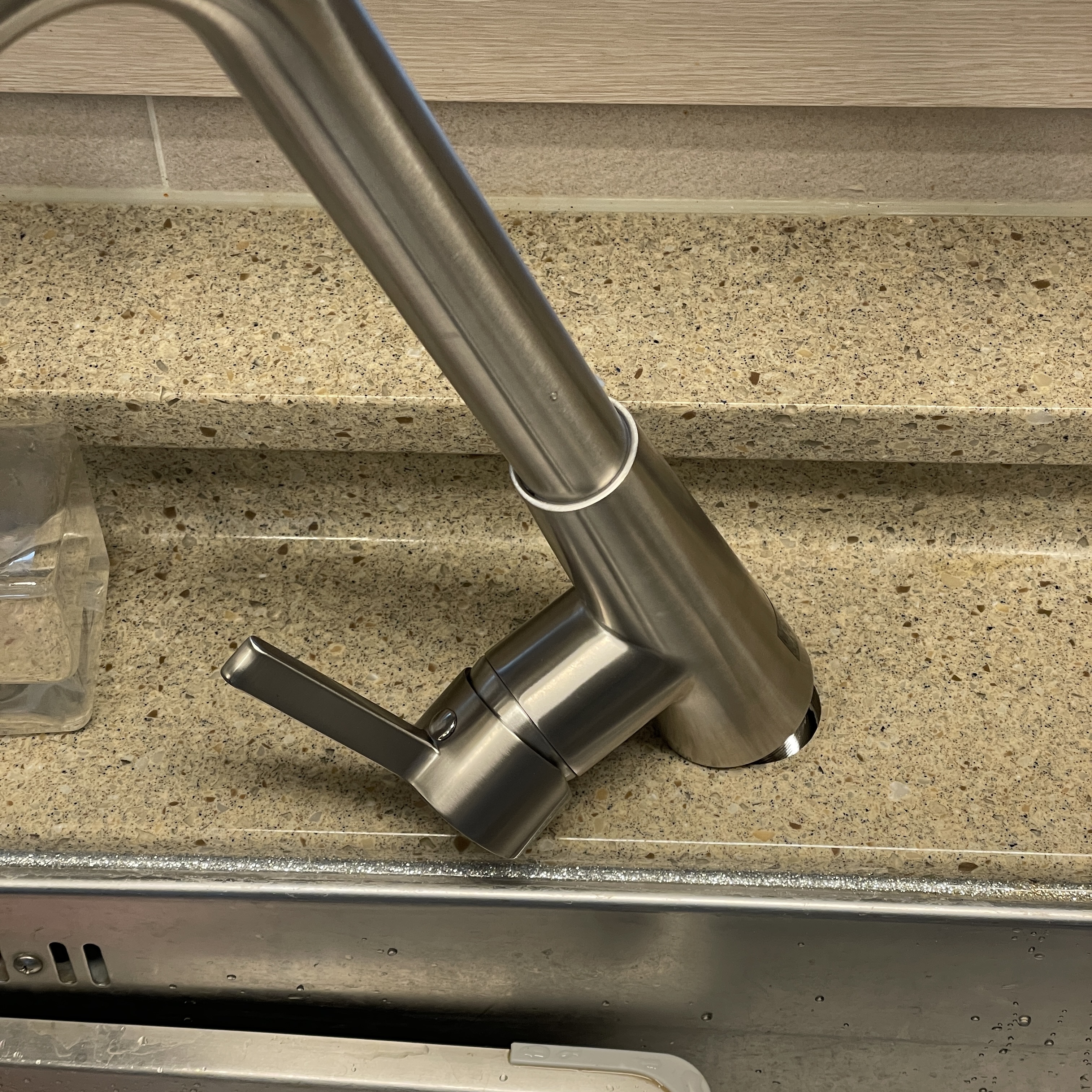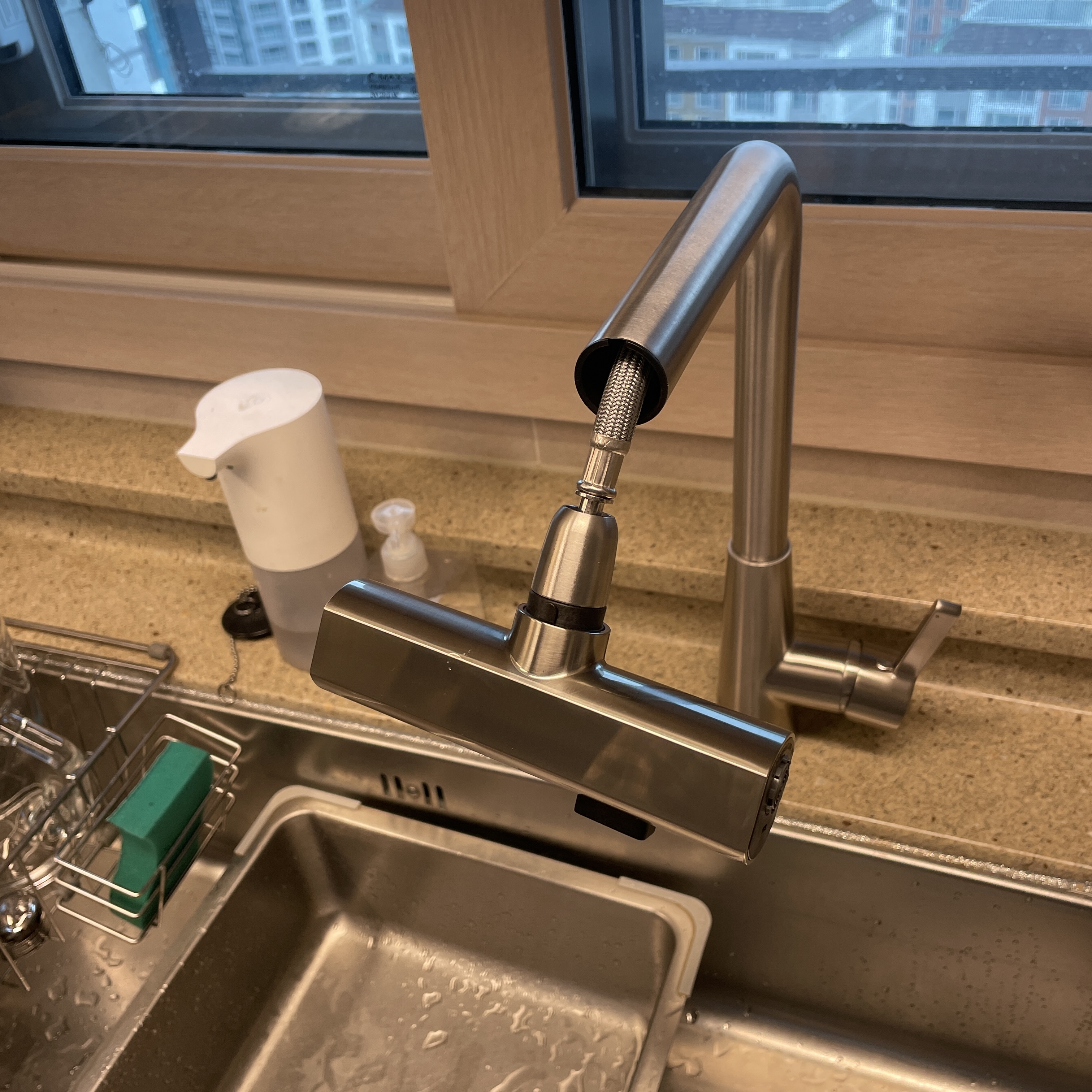 각도가 살짝 앞쪽으로 나오게 되어 있는데 물을 세게 틀면 거의 싱크볼 가장자리까지 물이 뻗어나가 불편했다.
