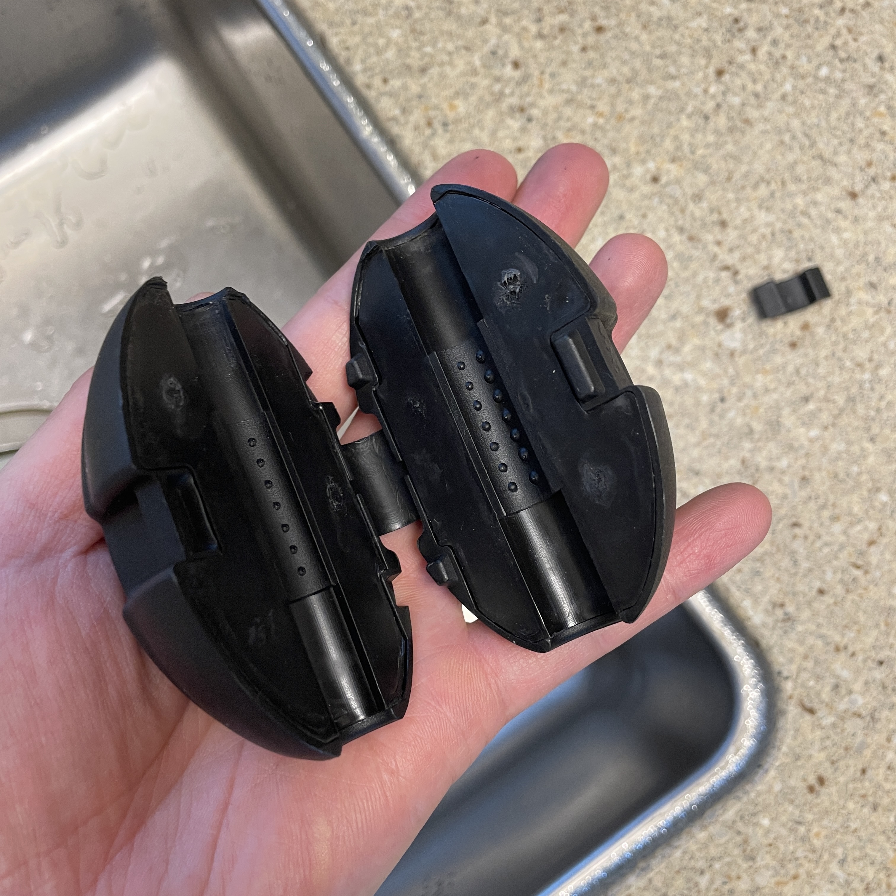 아까 수전 제거시 풀었던 황동 너트에 해당하는 부품인데, 특별히 설계된 구조로 적은 힘으로도 공구없이 단단히 조일 수 있는 부품이다.