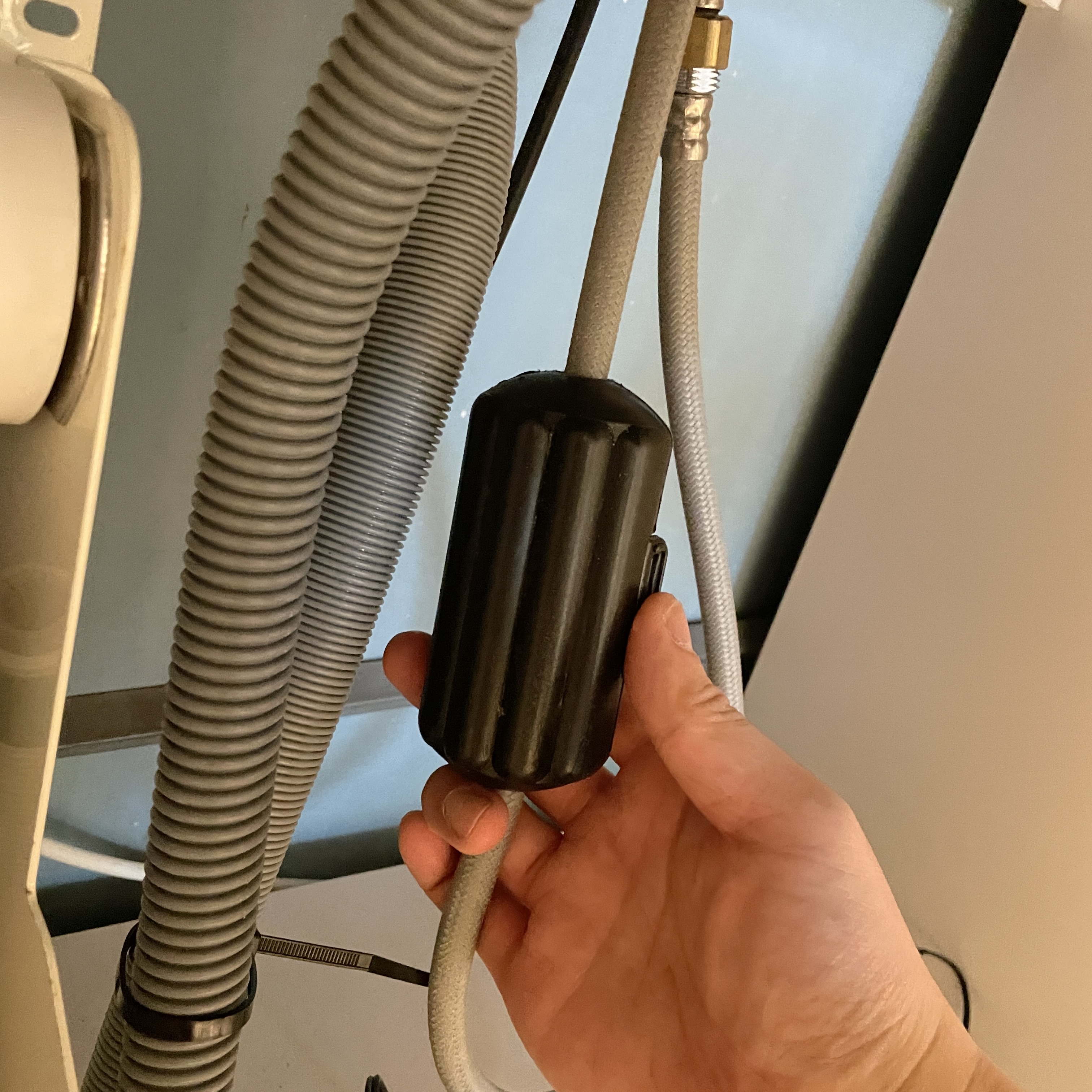기존 수전은 절수페달 모델이라 페달 신호 케이블이 연결되어 있다. 이것도 뽑아주면 된다.