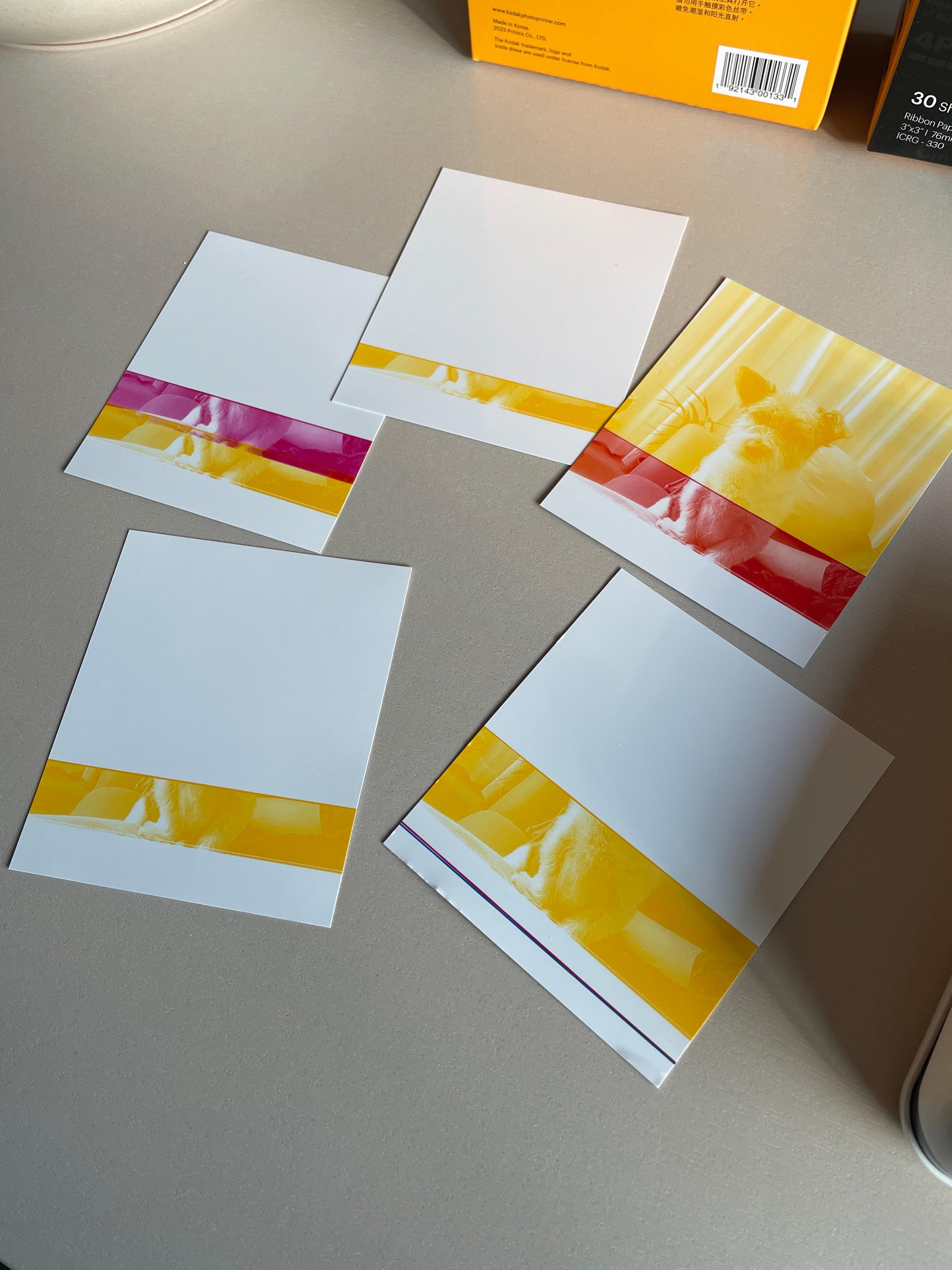 야심차게 새 카트리지를 넣었지만 이상한 작동음과 함께 그리다 만 사진들이 나와 버린다.