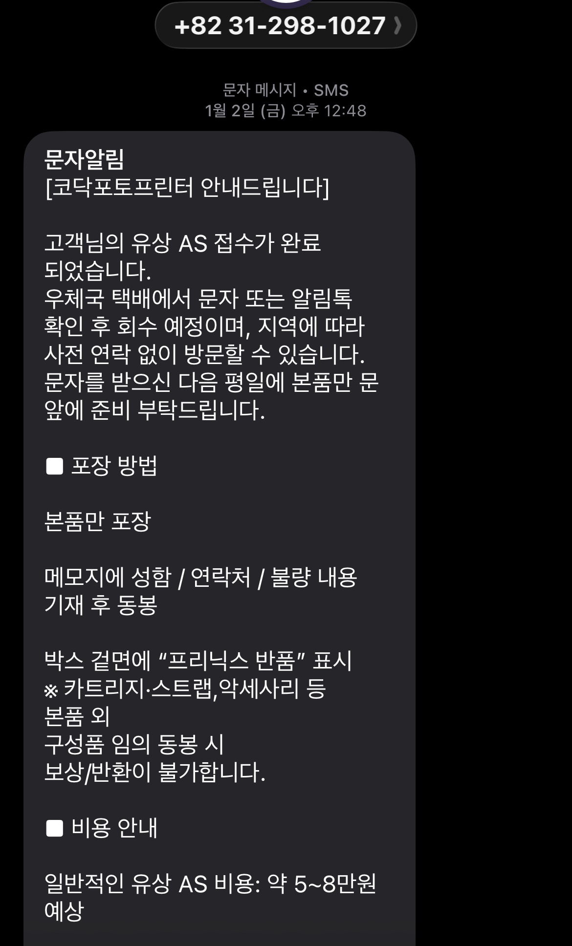 택배 배송을 하고 하루쯤 지나 AS 안내 문자가 온다.